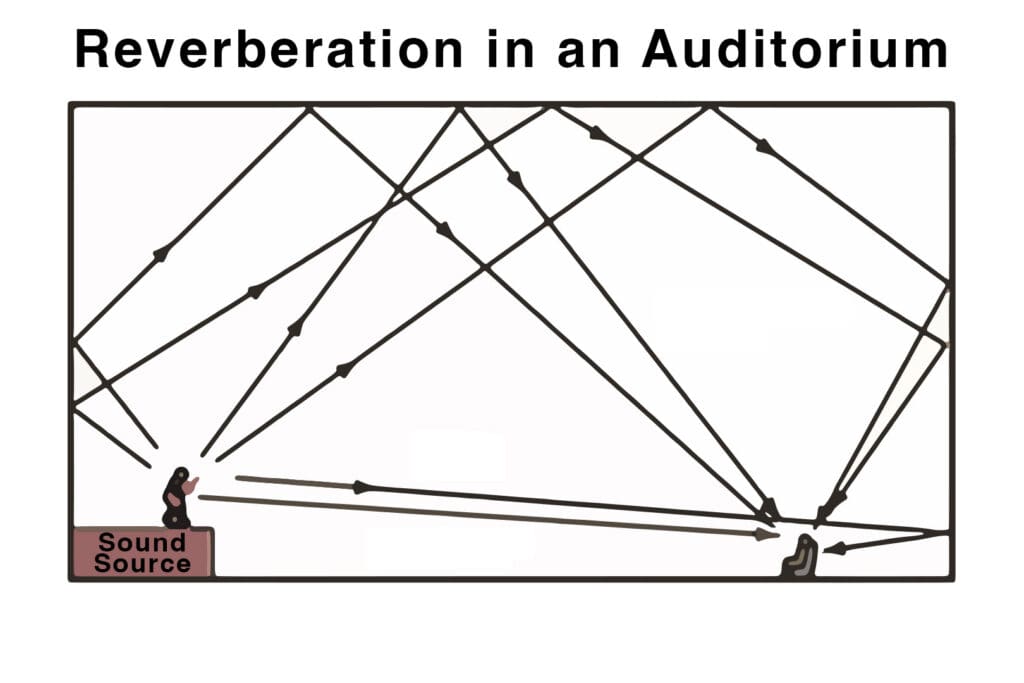 Too much reverberation, however, is a different animal. While a first-order reflection is helpful to listeners, anything more can lead to low speech intelligibility and sensory dissonance. The solution to excessive reverberation is to absorb unwanted reflections with acoustic treatments such as polyboard, fabric-wrapped panels, or quilted fiberglass absorbers, and to reflect helpful sound with diffusers and reflectors.